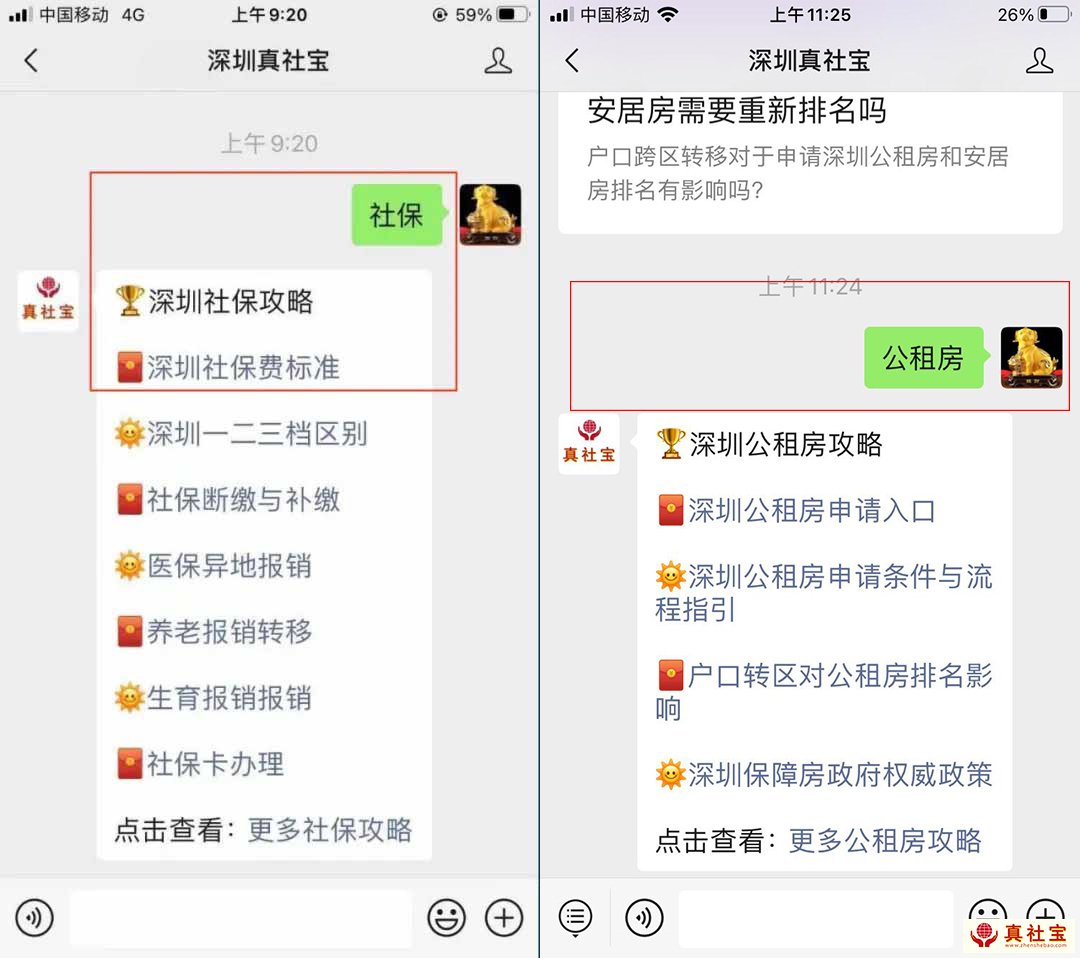微信搜索并關(guān)注“深圳真社寶”公眾號(ID:szzhenshebao),在對話框回復(fù):看公租房,就可以了解最新認(rèn)租房源消息、進(jìn)入輪候申請入口、查看輪候申請指南、進(jìn)入認(rèn)租入口、查看選房結(jié)果和審核合格名單。