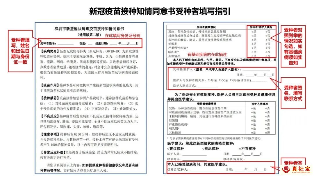 如實在《知情同意書》上報告學生身體狀況并簽名確認。按照《深圳市新冠疫苗接種知情同意書填寫指引》(見下方圖片)正確填寫知情同意書并簽字確認,否則不能接種疫苗。