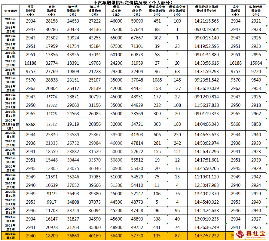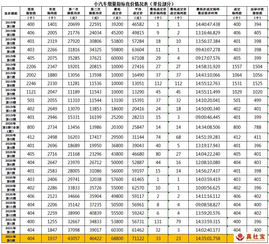 2021年深圳車牌競價情況匯總表