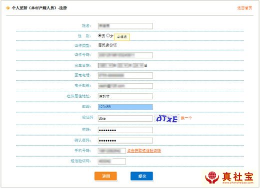 第四步:更新注冊填寫(以本市戶籍人員為例)