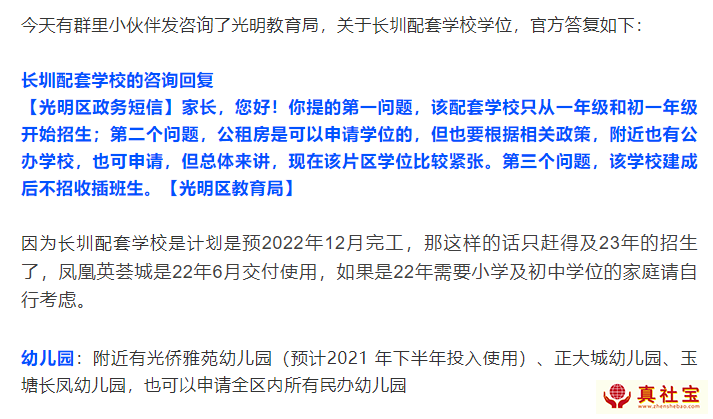 光明請(qǐng)長(zhǎng)圳(鳳凰英薈城)公租房配套學(xué)校學(xué)位問(wèn)題,幼兒園及小學(xué)初中如何插班 1、幼兒園 鳳凰英薈城幼兒園計(jì)劃2022年秋季學(xué)期開(kāi)學(xué),但是也要看進(jìn)度,具體開(kāi)學(xué)時(shí)間待定。 光明區(qū)...