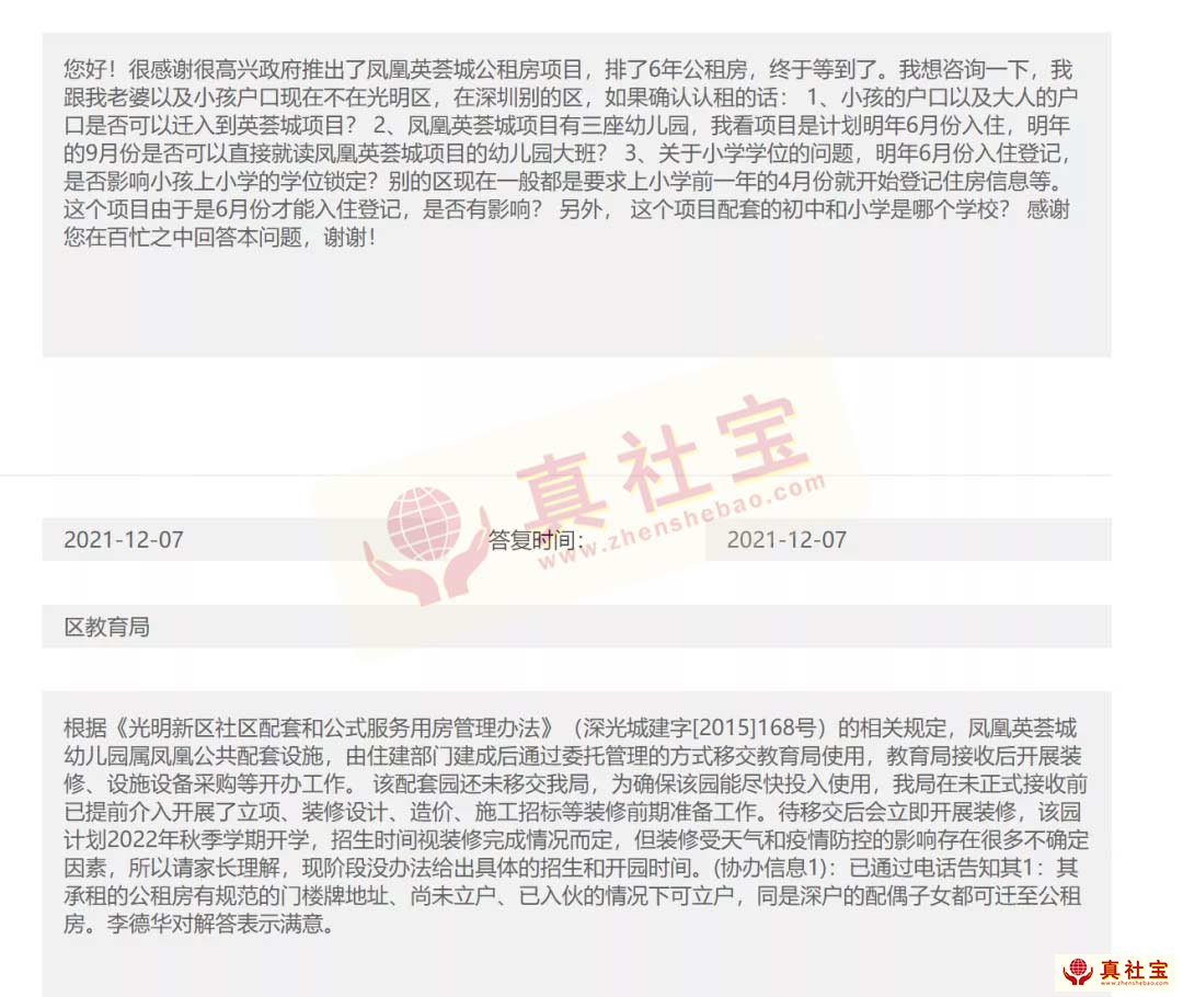 長(zhǎng)圳(鳳凰英薈城)配套學(xué)校招生的官方答復(fù),明年讀小一,初一的家庭注意了