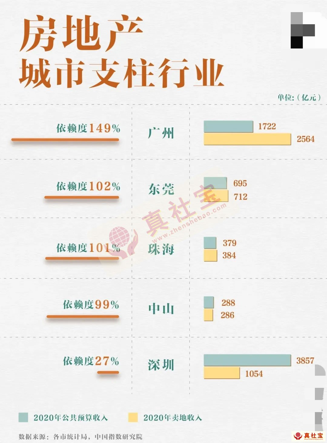 據(jù)廣東省各市統(tǒng)計(jì)局和中國指數(shù)研究院數(shù)據(jù)顯示:大灣區(qū)各城市對于房地產(chǎn)依賴程度與人想象的有差距。